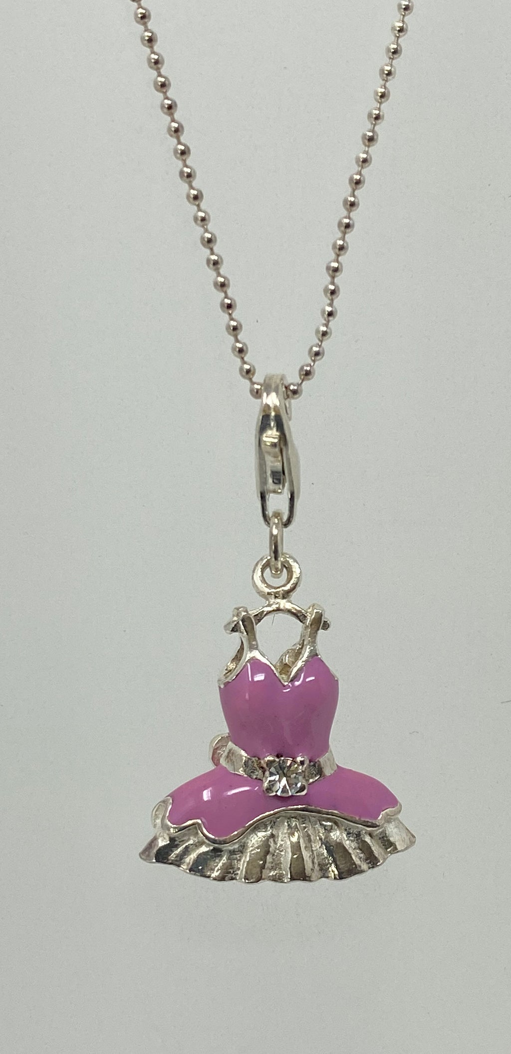 Silver and Pink Enamel Silhouette with Cubic Zirconia Charm on Chain