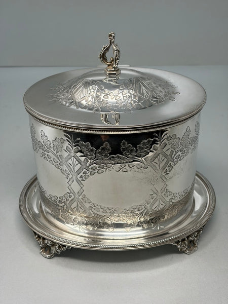 Antique Victorian Silver Plated Oval Biscuit Box by Hukin & Heath