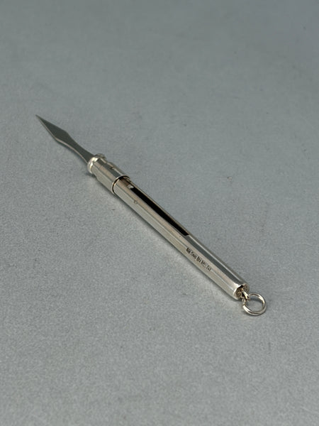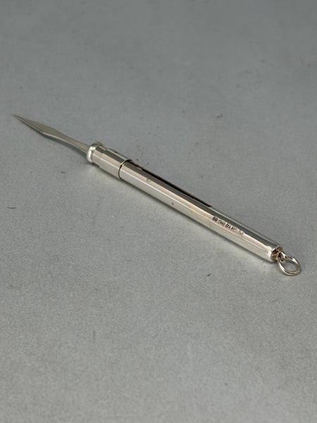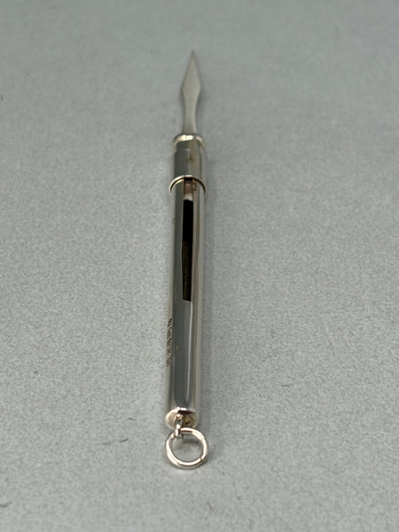 Plain Sterling Silver Toothpick with Sliding Action - full english hallmark
