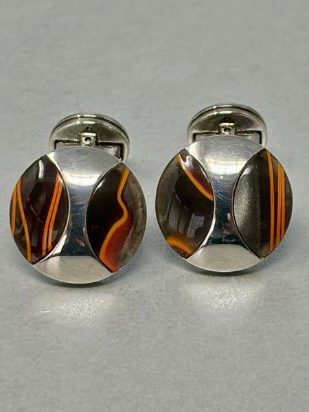 Round resin cufflinks - made by The London Buadge & Button Company - grey and orange