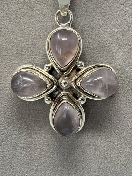 Silver and rose quartz necklace on a snake chain