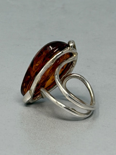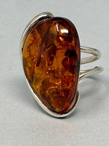 Sterling Silver & Amber Ring