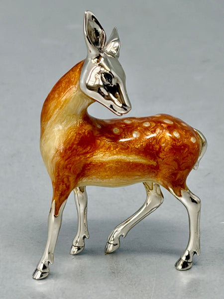 Sterling Silver and enamel female deer - full english hallmark