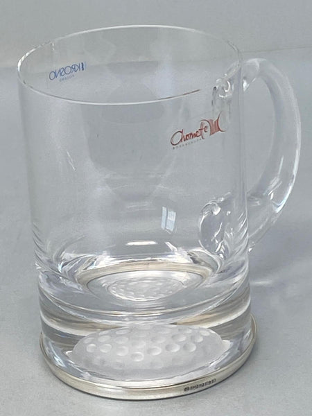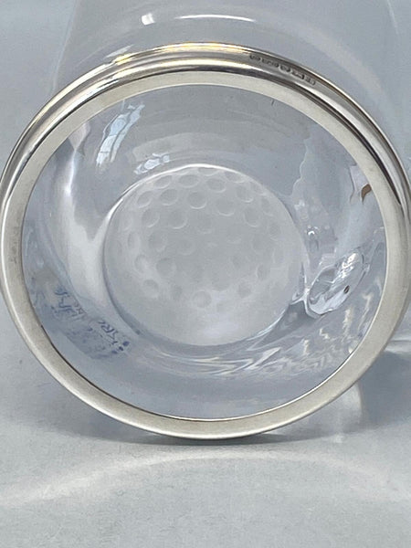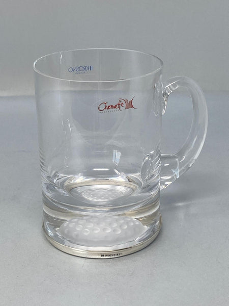 Sterling Silver (full english hallmark) and Krosno Glass 1pt Tankard with golf ball domed from underneath